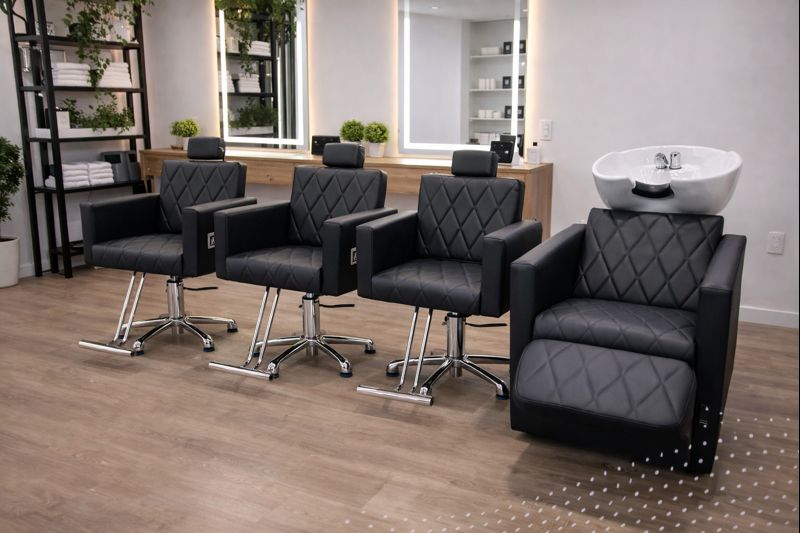 O Combo triplo da Linha Elegânce na costura matelassê da Línea Móveis para Salão! É a melhor opção para o seu salão de beleza!